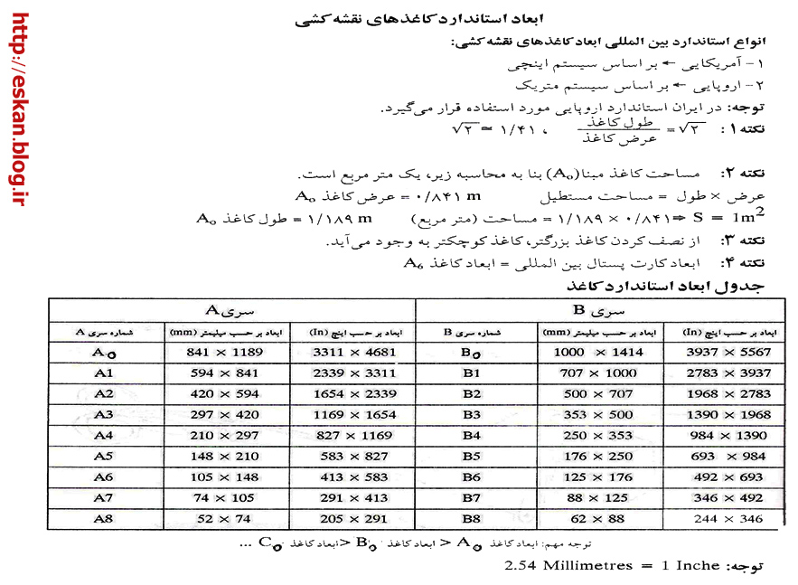 انواع استاندارد بین المللی ابعاد کاغذ های نقشه کشی